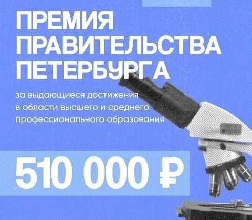 «В прошлом году увеличили размер этой премии до 510 тысяч рублей. Условия участия можно посмотреть по ссылке. Приглашаю работников научных и образовательных организаций подавать заявки!» – написал глава Северной столицы в своём телеграм-канале.