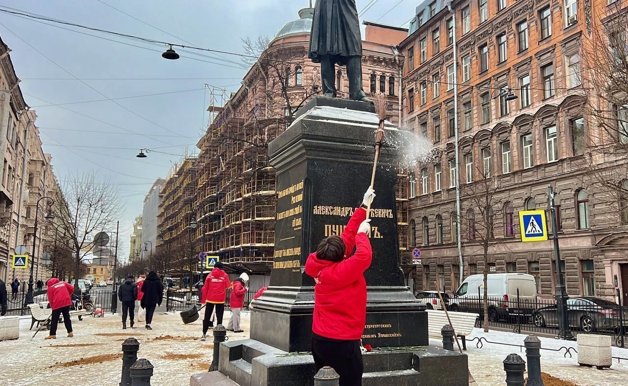 Ежегодно 10 февраля отмечается день памяти великого поэта А. С. Пушкина, в честь этого свыше 30 активистов «Волонтёрской Роты» Петербурга организовали акцию по благоустройству Пушкинского сквера. Об этом сообщает новостной телеграм-канал «Центр. Новости».