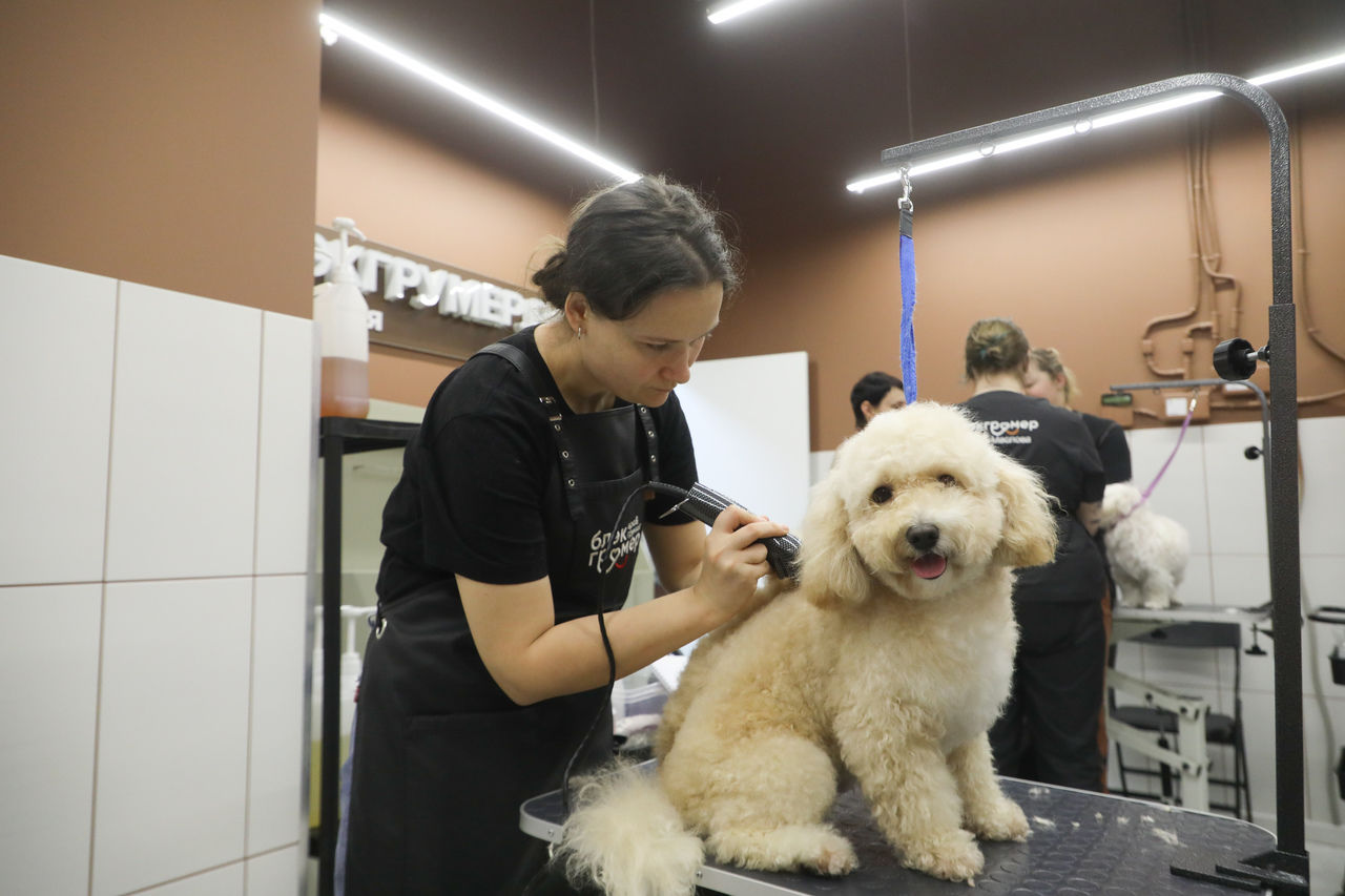 Появился первый в Петербурге курс груминга – ухода за животными, включающее стрижку, мытье, расчёсывание и другие процедуры, для слабослышащих людей. Работу запечатлел фотограф «Петербургского дневника» Александр Глуз.