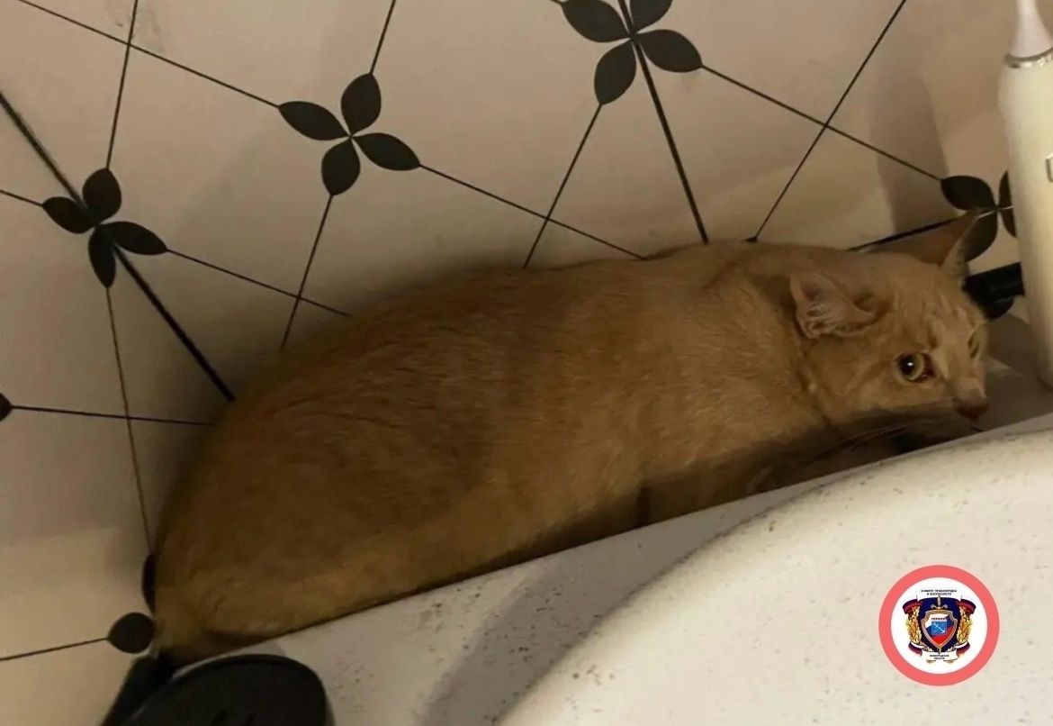 Спасатели вывели из задымленного коридора в Мурино домашних животных