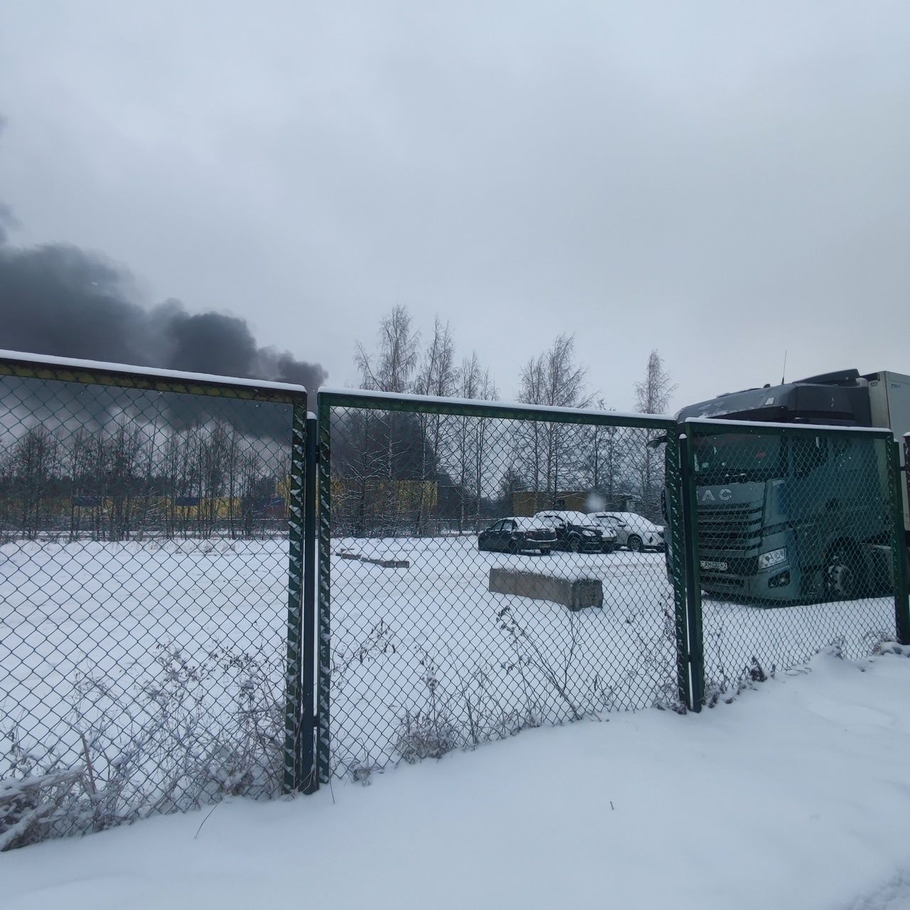 В Петербурге сегодня произошёл пожар в здании склада на Волхонском шоссе. Видеозаписью с места происшествия поделились в группе «ДТП и ЧП | Санкт-Петербург» во «ВКонтакте».