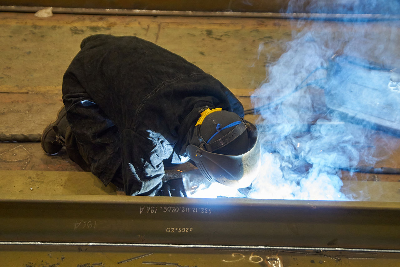 Закончив разговор, он плотнее запахивает куртку сварщика, отходит на отведенный ему участок секции бортовой обшивки корабля, и уже через минуту там вспыхивает огонь электрической дуги.