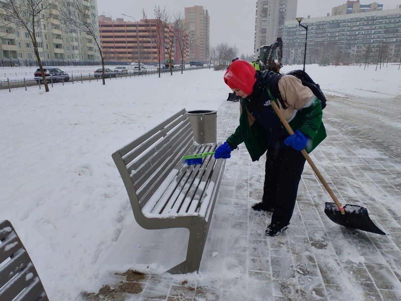 В Петербурге чистят от снега парки и скверы