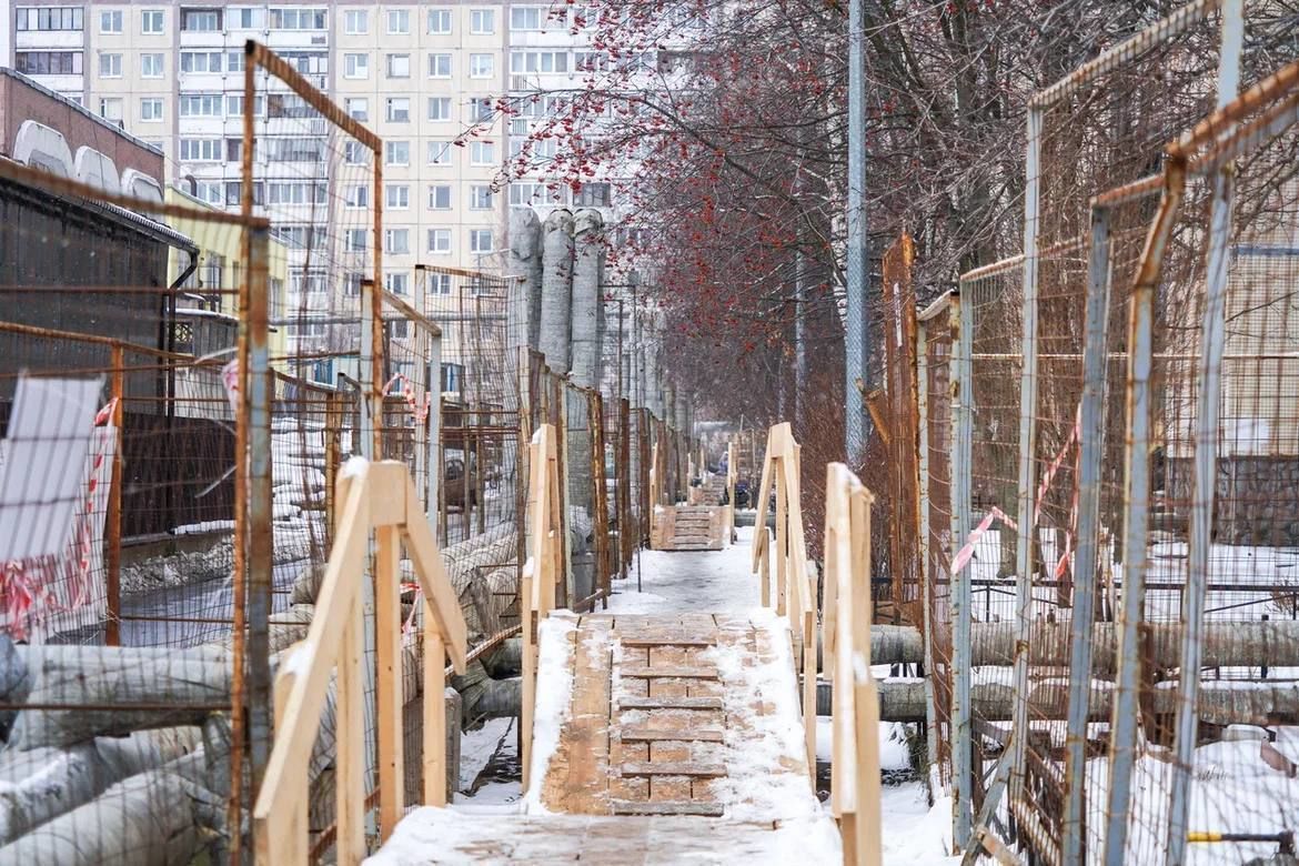 На данный момент уже установлено почти 3 тысячи метров временных трубопроводов из запланированных 5786 метров. Также проложено 184 метра постоянных труб и ведется демонтаж старых тепловых сетей в подвалах домов 11, корп. 1, и 13 по проспекту Авиаконструкторов.