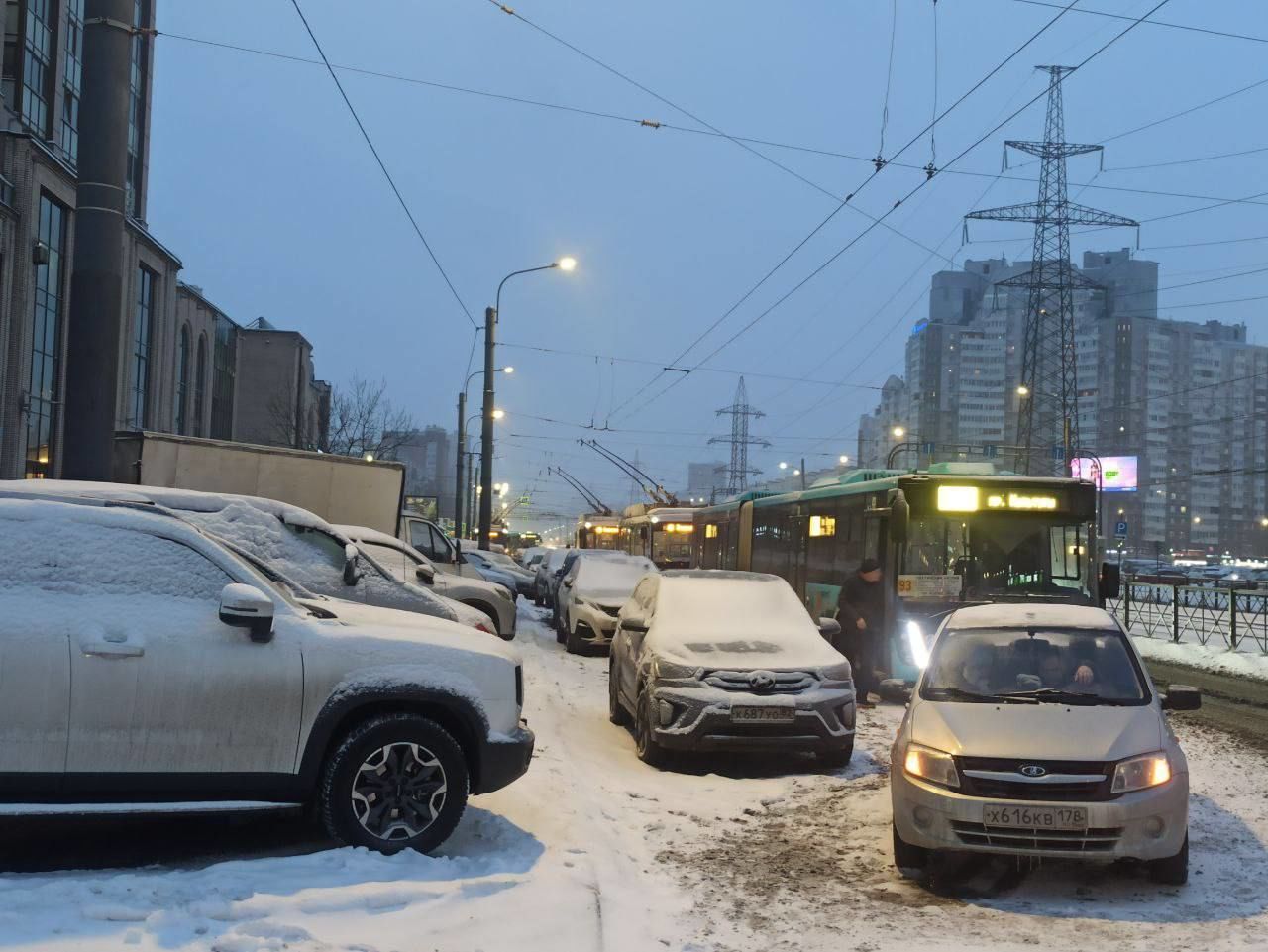 «На «Пионерской» из-за аварии встал общественный транспорт», – написали авторы поста и опубликовали фотографии в телеграм-канале «Петербург с огоньком».