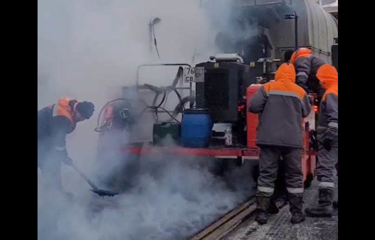 Специалисты занимаются укладкой литого асфальтобетона в районе трамвайных путей. Температура укладываемого материала превышает 200°C, поэтому влага испаряется практически мгновенно. Перед укладкой дорожники очищают поверхность и наносят битумный праймер для обеспечения лучшего сцепления асфальта с основанием дороги. Ожидается, что завершение работ на улице Льва Толстого состоится 25 апреля.