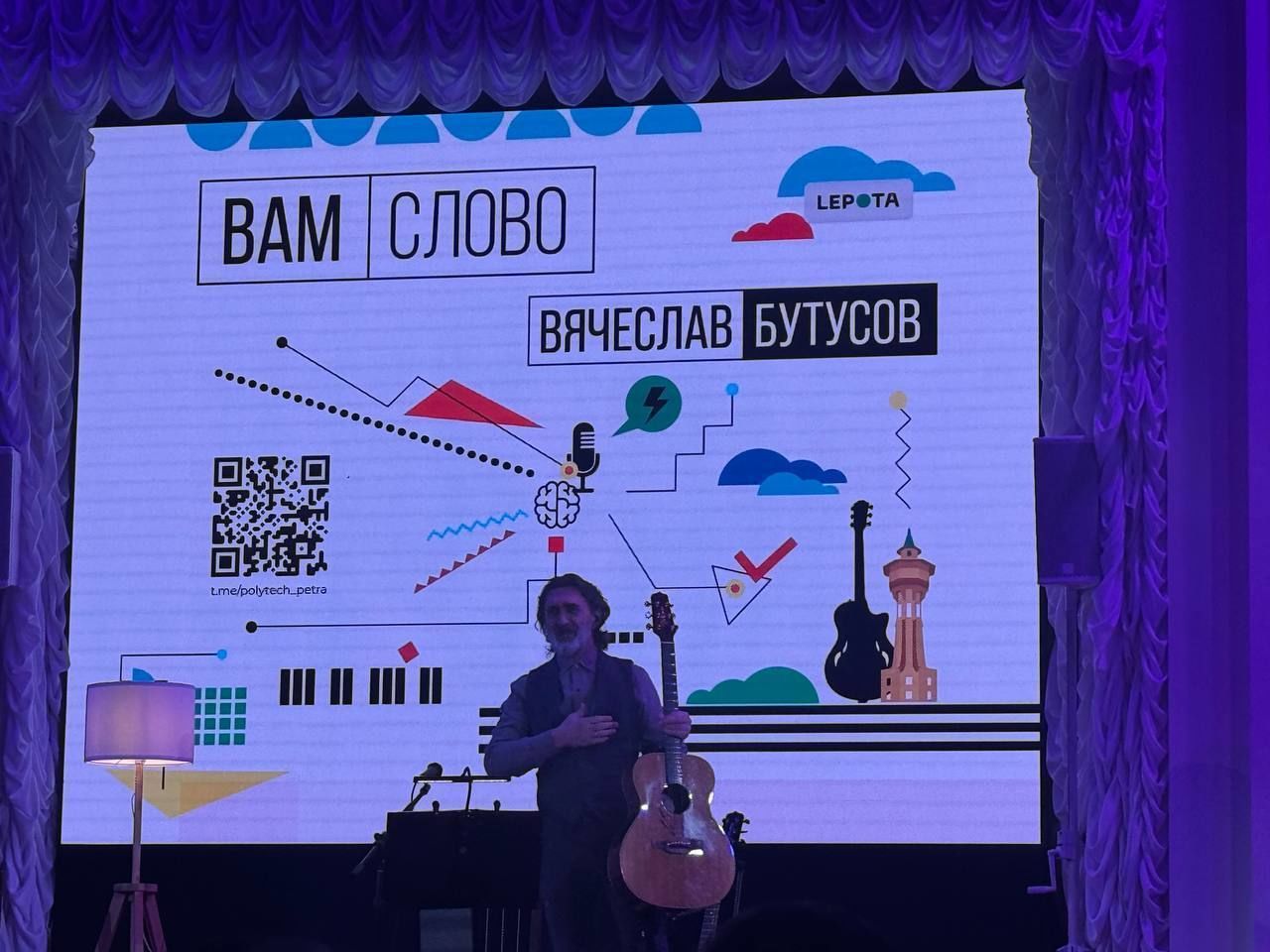 В преддверии 126-летия Санкт-Петербургского политехнического университета перед студентами и гостями выступил легендарный музыкант, поэт и художник Вячеслав Бутусов.