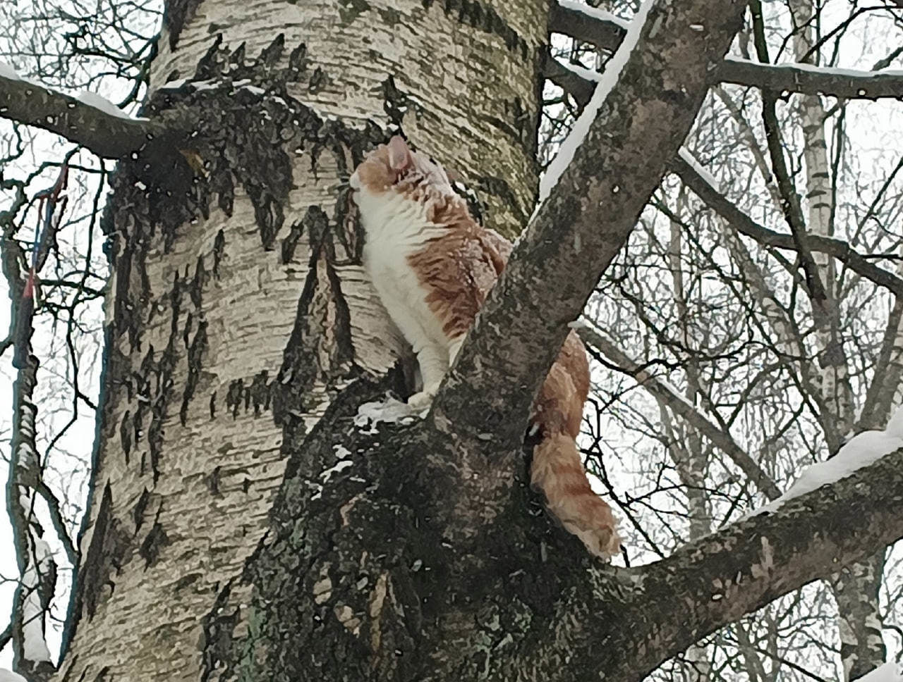 В Петербурге рыжий кот провел целые сутки на дереве после того, как хозяйка оставила его на улице при морозе -10 градусов. Инцидент произошел в парке «Серебряный пруд» на Институтском проспекте.