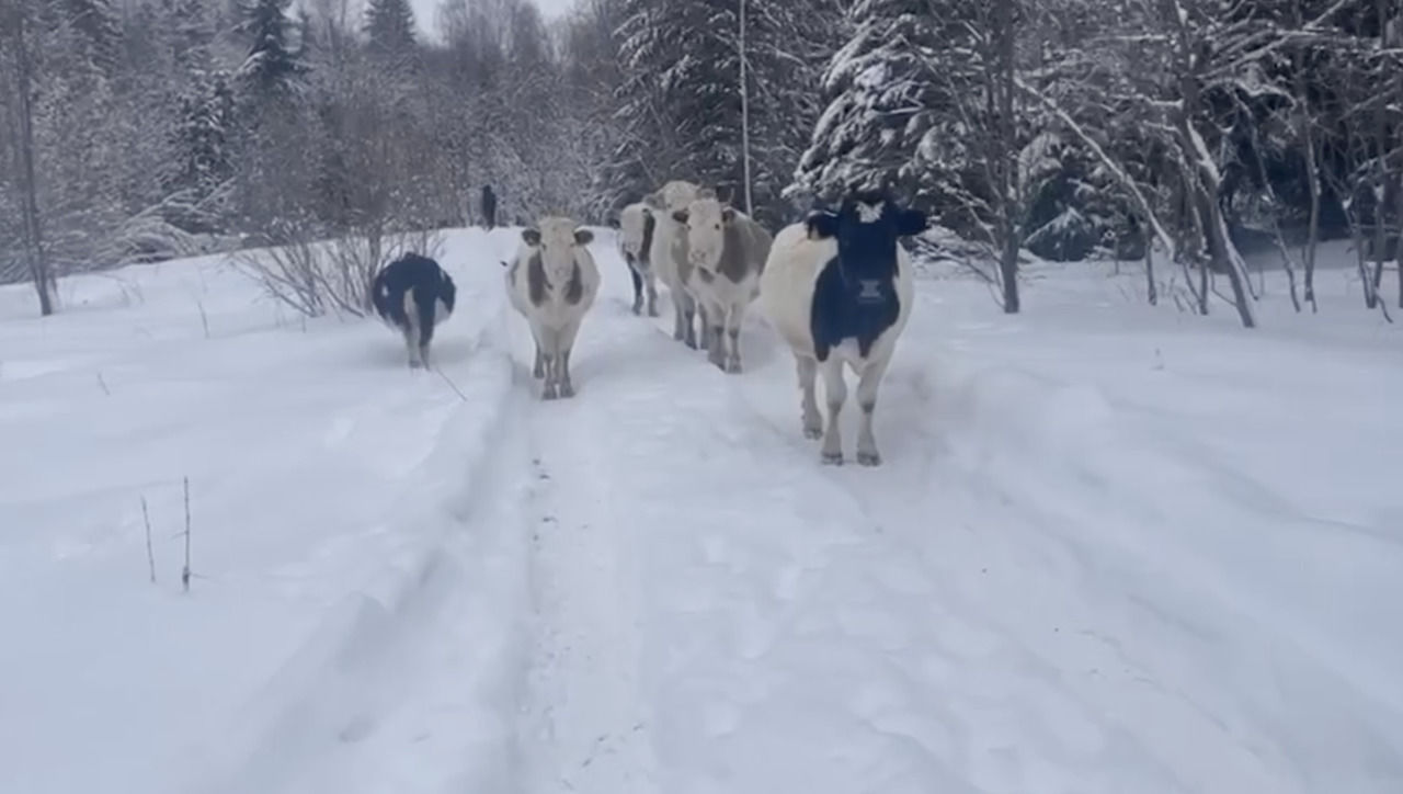 Вместе с хозяевами, семьей фермеров Куржепеев, 58 животных, в том числе – стадо коров, приехали в Подпорожский район Ленобласти из Тувы в 2021 году, сообщили сегодня в пресс-службе региональной администрации.