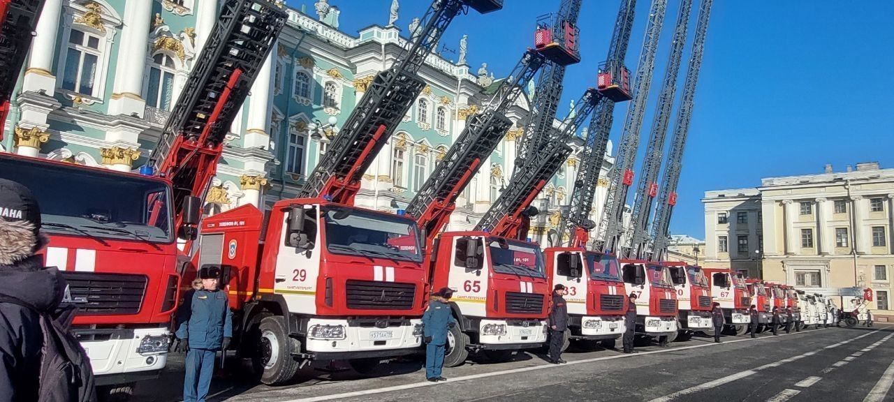 На Дворцовой площади состоялось вручение пожарно-спасательному гарнизону Санкт-Петербурга новых образцов пожарно-спасательной техники.