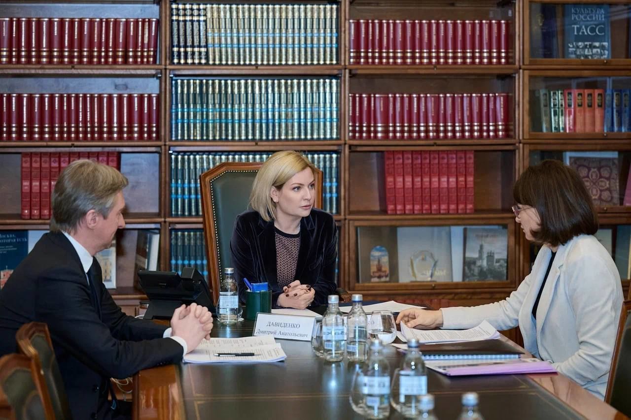 Министр культуры России Ольга Любимова провела встречу с генеральным директором киностудии «Ленфильм» Надеждой Андрющенко. На встрече обсуждались планы дальнейшего развития киностудии.