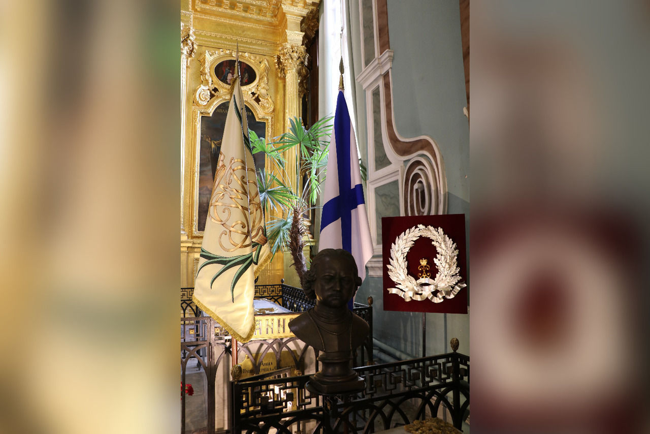 Рядом с его захоронением установят Полковое знамя 1712 года и Андреевский флаг, которые были специально изготовлены по историческим образцам к 300-летию со дня смерти Петра Великого.