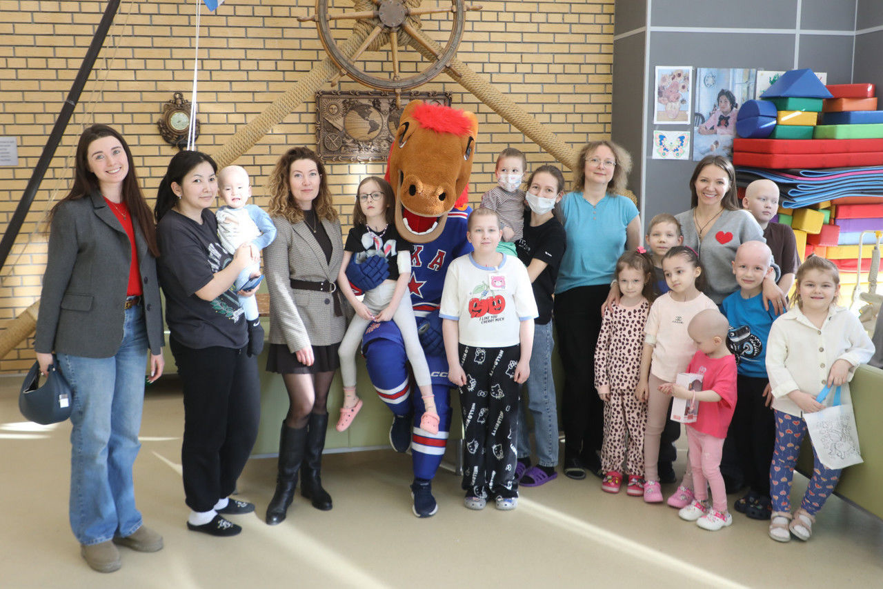 Конь-Огонь позволял детям гладить себя по гриве, легонько лягался, но чаще всего просто обнимал и веселил маленьких пациентов. Любовь Белозерова раздавала юным пациентам открытки, написанные зрителями состоявшегося 4 февраля на «СКА Арене» хоккейного матча СКА – «Ак Барс», а также подарки из «Сундучка храбрости».
