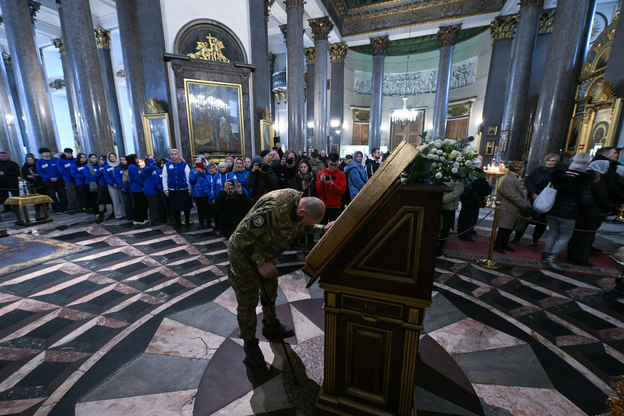 Он добавил, что в итоге из иконы решили сделать общую святыню и поместить в Казанский собор. И сегодня, в честь годовщины начала СВО, провести молебен за здравие всех наших воинов. Иван Есипов подчеркнул, что киот иконы оформлен шевронами военнослужащих, сражавшихся непосредственно в зоне СВО. Он поблагодарил «Волонтерскую роту», Комитет по молодежной политике Санкт-Петербурга, ассоциацию ветеранов СВО и всех, кто помогал в организации святыни.