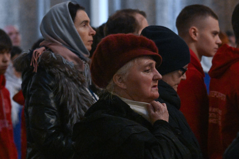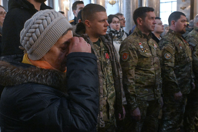 В богослужении приняли участие военнослужащие, ветераны, жены мобилизованных участников СВО, почетные гости, волонтеры, представители благотворительных фондов, юнармейцы.