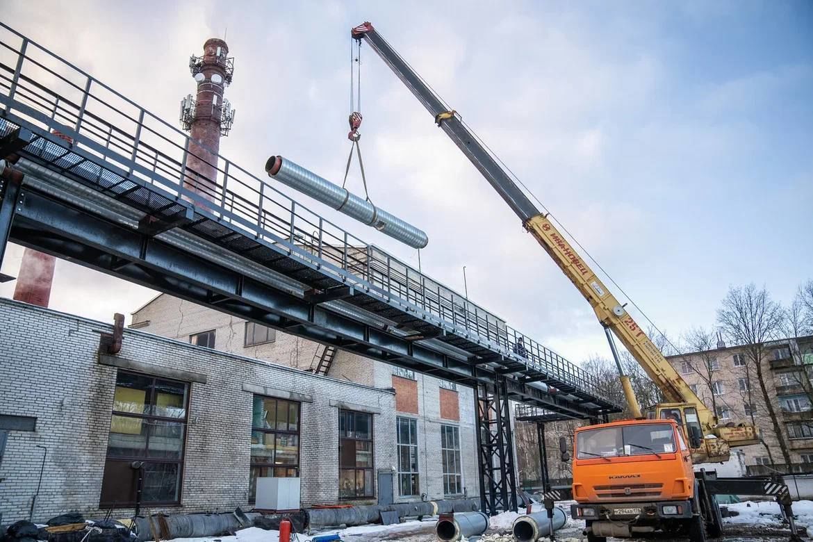 В ходе реконструкции планируется как воздушная, так и подземная укладка теплопроводов. Специалисты уже установили технологическую эстакаду для тепловой сети и прокладывают основной участок трубопровода на территории котельной.