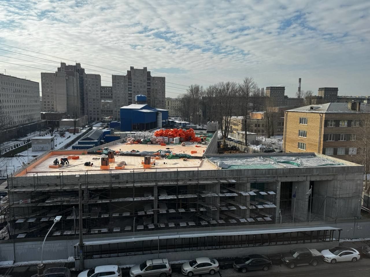 В настоящее время на забетонированное перекрытие кассового зала и входной группы укладывается многослойная конструкция, обеспечивающая надежную гидроизоляцию.