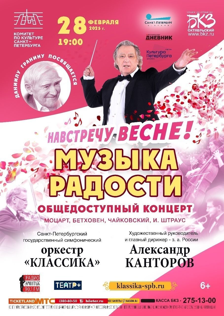 В БКЗ «Октябрьский» 28 февраля в 19:00 откроется цикл общедоступных концертов Санкт-Петербургского государственного симфонического оркестра «Классика» под управлением заслуженного артиста России Александра Канторова при поддержке Комитета по культуре.