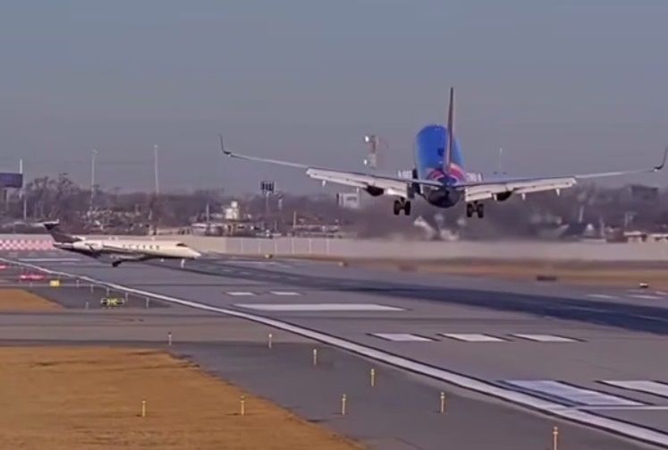 Видео: Boeing взлетел при посадке, чтобы не столкнуться с другим самолетом в аэропорту