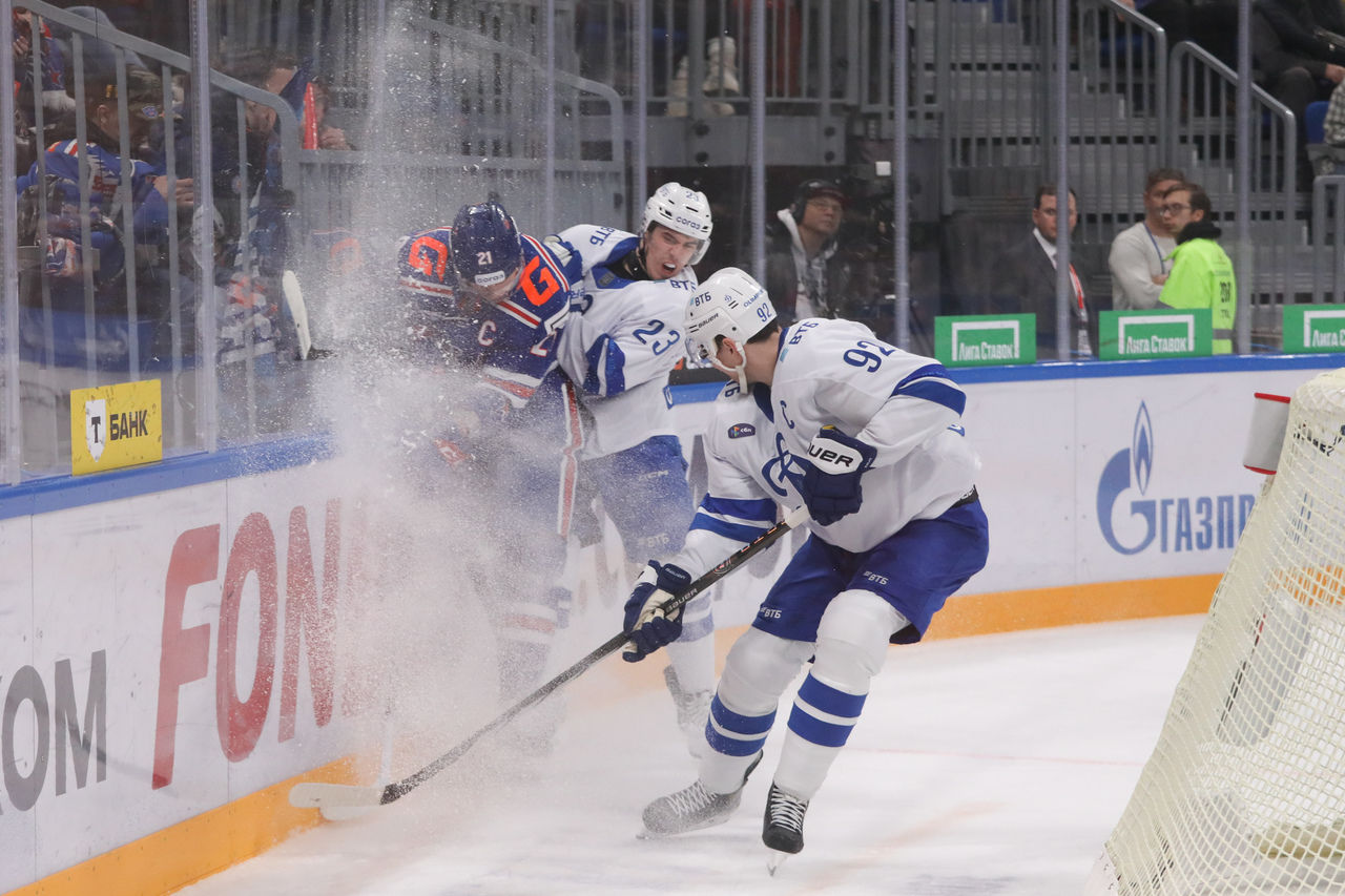 Фотограф «Петербургского дневника» запечатлел самые яркие эпизоды матча СКА с «Динамо». Игра в городе на Неве завершилась поражением армейцев со счетом 0:1.