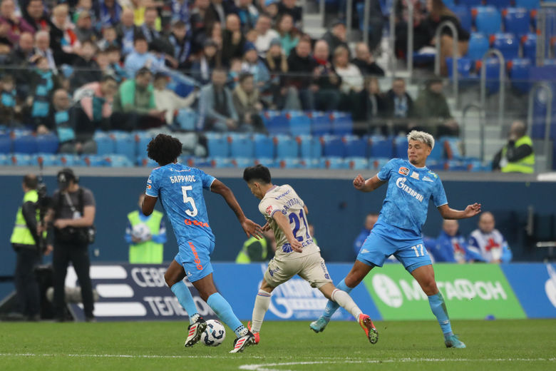 По ходу игры зенитовцы меняли позиции, Дркушич выдвигался ближе к центру поля, часто отходили назад Лусиано и Кассьерра, Мантуан смещался влево в атаку.