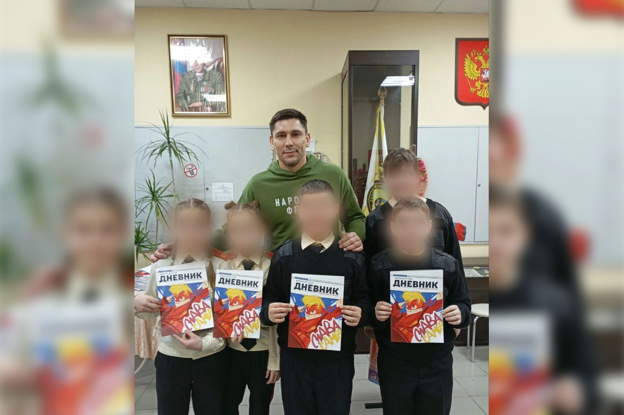 Депутат петербургского парламента, сопредседатель регионального отделения «Народного фронта» Антон Соловьев познакомил воспитанников донецкого Кадетского корпуса имени А. В. Захарченко с новым супергероем Славой Самбо, созданным командой «Петербургского дневника» и Фондом имени В. А. Соловьева.