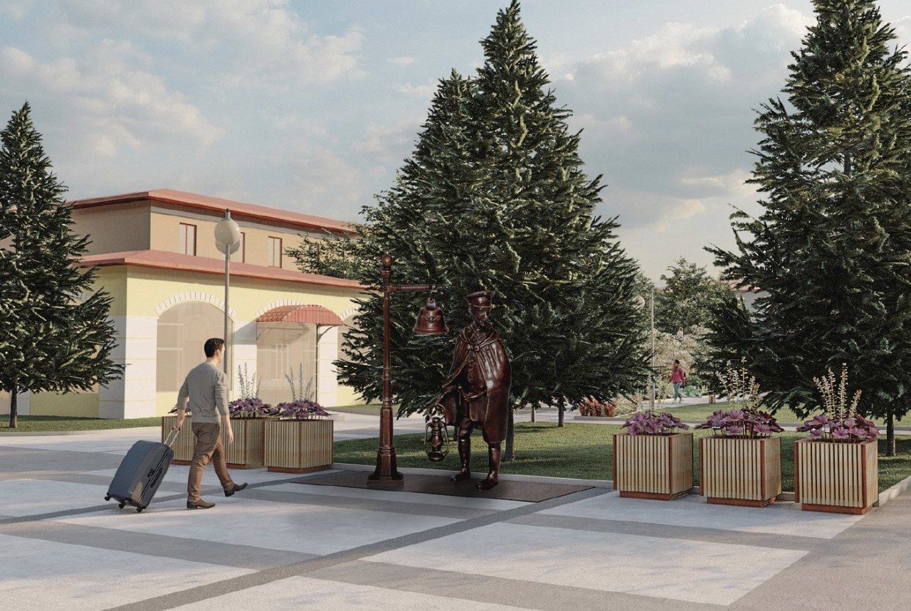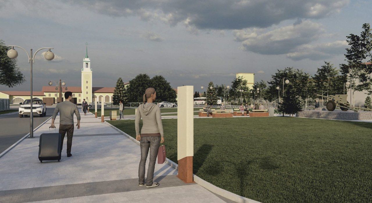 «Привокзальная зона включает фотозону с памятником и зону отдыха. Предлагается мощение с орнаментом, отсылающим к железнодорожным путям, и информационные стенды. Будет много фонарей, запланирована подсветка деревьев», – говорится в сообщении.