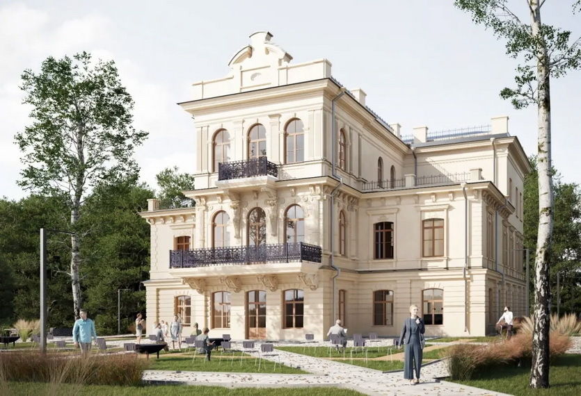 Особняк был построен в конце XIX века в стиле эклектики на бывшем Киновиевском ультрамариновом заводе Георгия Веге. Здание досталось компании в практически разрушенном состоянии. Первым этапом стали противоаварийные работы, включая восстановление кровли, которая была сильно повреждена и угрожала интерьерам здания. Работы по реставрации начались весной прошлого года. После восстановления особняк планируется приспособить под современное использование по проекту, согласованному с КГИОП, передает «Мойка78».