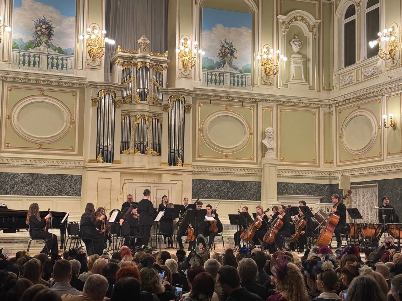 В Санкт-Петербурге в ходе акции «Красивый выход» в Государственной академической капелле состоялся праздничный театрализованный концерт «Алые паруса». На мероприятии собрались 300 дам в изысканных вечерних платьях и элегантных шляпках, каждая из которых была настоящим произведением искусства. Участницы дополняли свои образы аксессуарами в виде цветов и перьев, подчеркивая атмосферу торжества и вспоминая традиции прошлого.