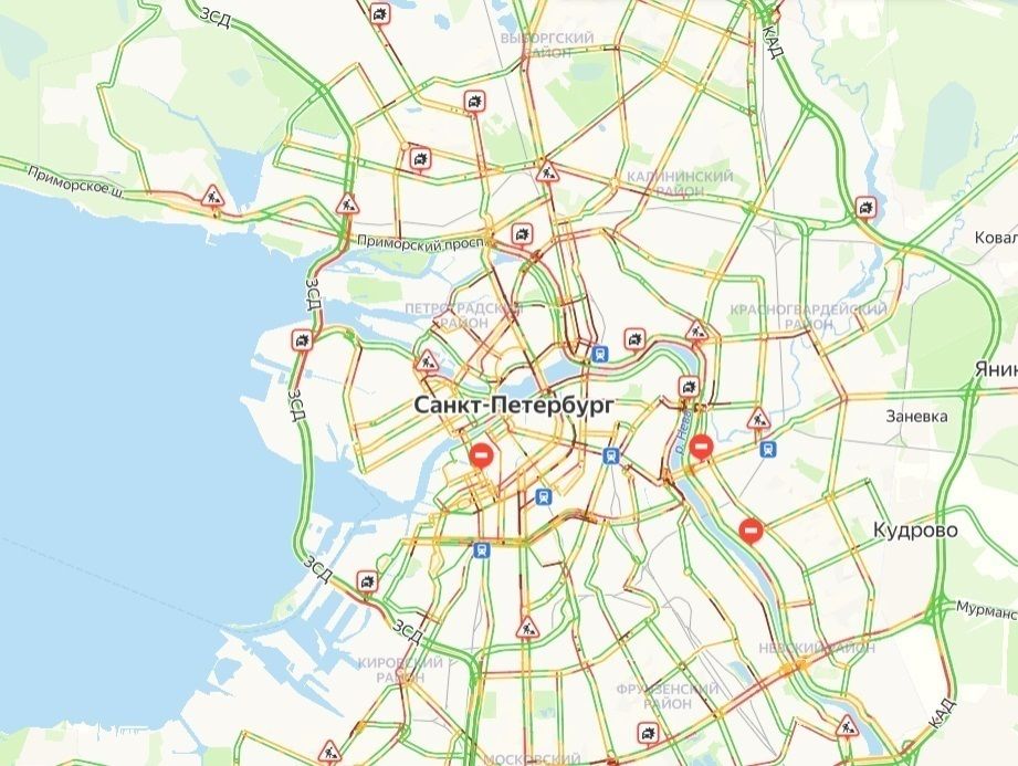 Петербург вечером 7 марта сковали 7-балльные пробки. Заторы на дорогах начались раньше вечернего часа пик. Согласно сервису «Яндекс. Пробки», заторы по состоянию на 16 часов – 7 баллов, а уже через час прогнозируют 8 баллов.