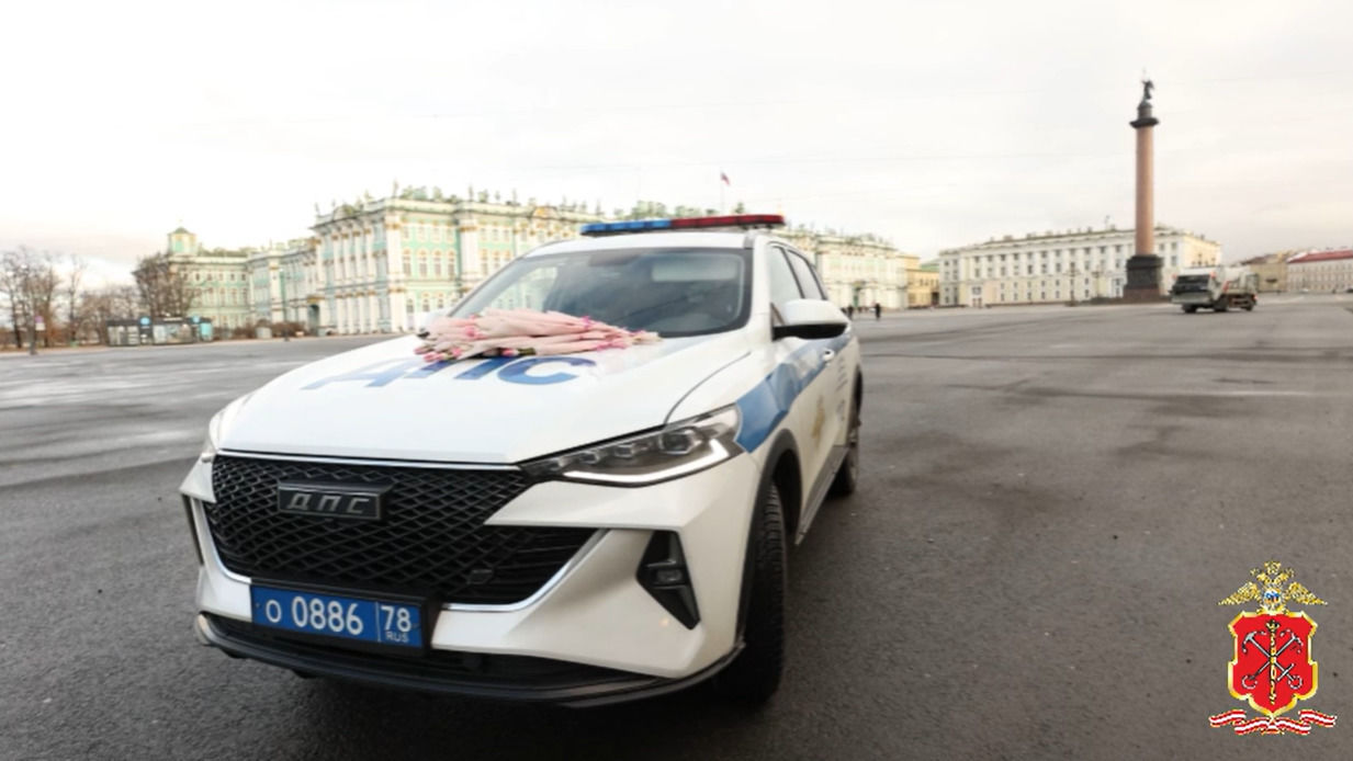 На Дворцовой и площади Восстания полицейские вручали женщинам-водителям цветы, поздравляя их с праздником и желая успехов, больших достижений и безопасных поездок.