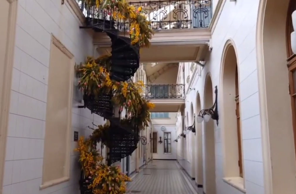 На Витебском вокзале установили лестницу из цветов