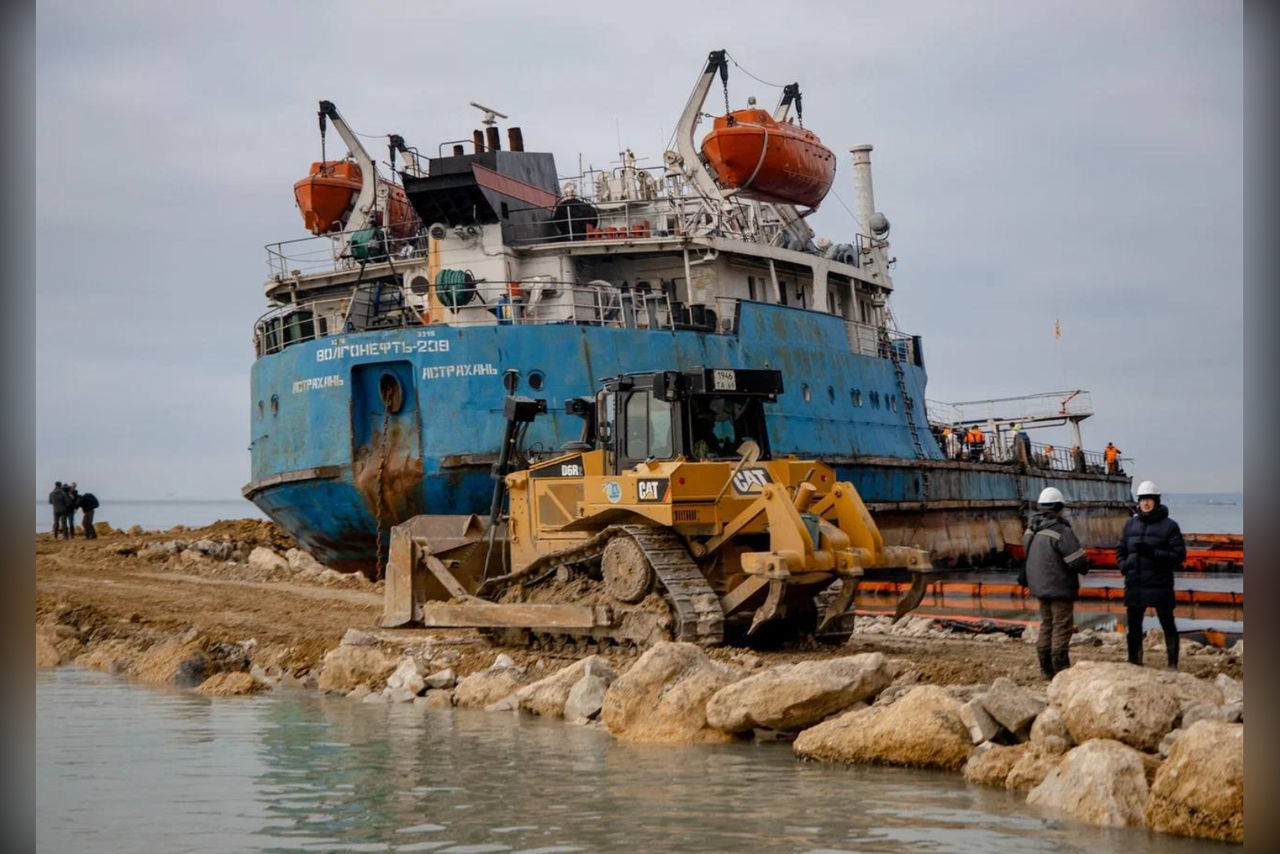 Спецтехника вывезла с мыса Панагия последние детали танкера «Волгонефть-239»