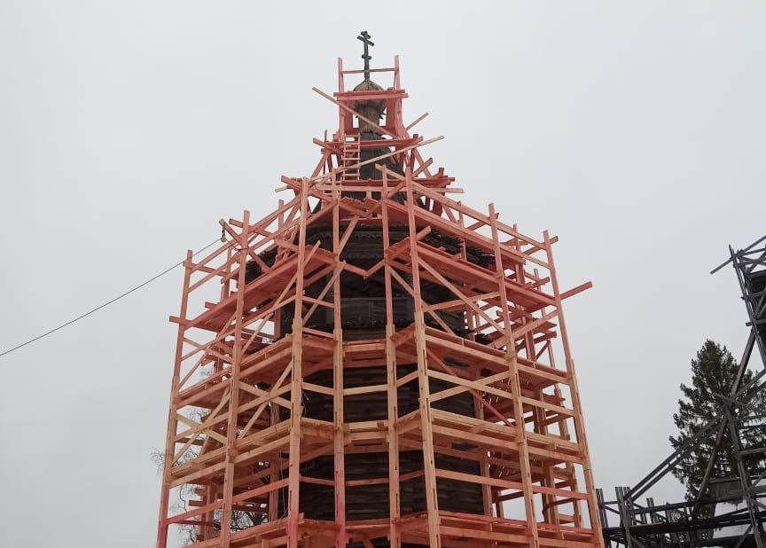Запланировано, что в 2025 году специалисты демонтируют сруб, создадут фундамент, заменят поврежденные бревна и вновь соберут конструкцию. Вокруг колокольни уже установлены строительные леса, а рядом организован склад для хранения деревянного сруба.