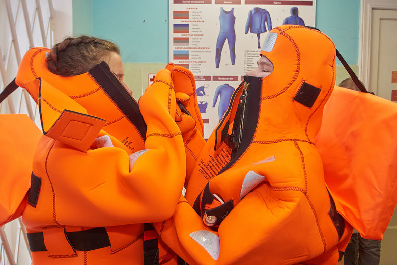 Но, положа руку на сердце, стоит признать – не только в физподготовке преподаватели делают скидки девушкам. Влезть в спасательный костюм и застегнуть его им пока очень трудно самим.