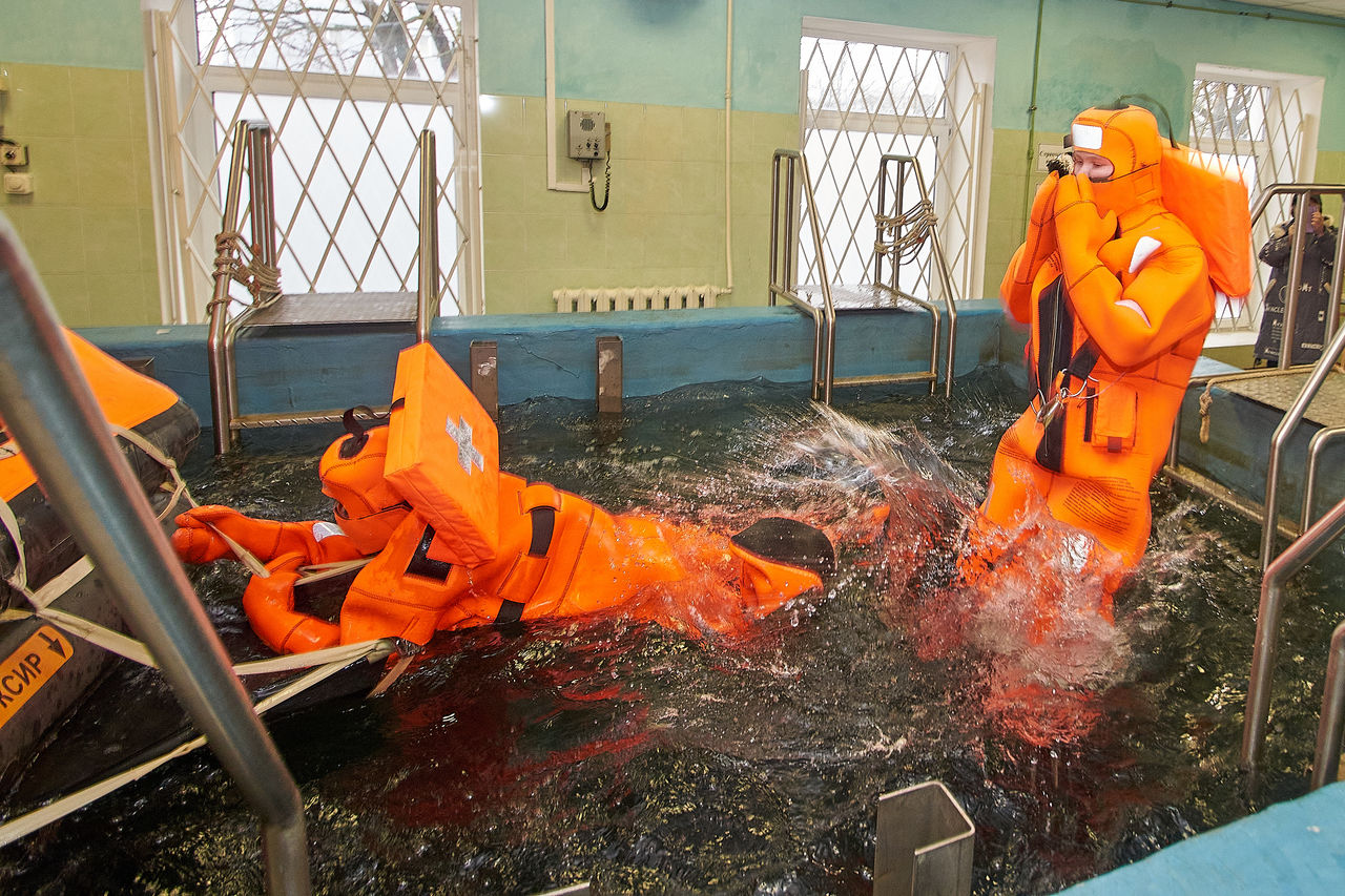 «У девушек прошли только первые занятия по покиданию аварийного корабля, – поясняет Алексей Фролов. – Они миниатюрные, а самые маленькие спасательные костюмы рассчитаны на рост 160 – 180 см, и им самостоятельно тяжело их надеть и застегнуть. Так что на первых порах помогаем. Но скоро они освоятся и пойдут дальше – им предстоит отрабатывать покидание аварийной подлодки через торпедный аппарат. Уверен – все справятся».