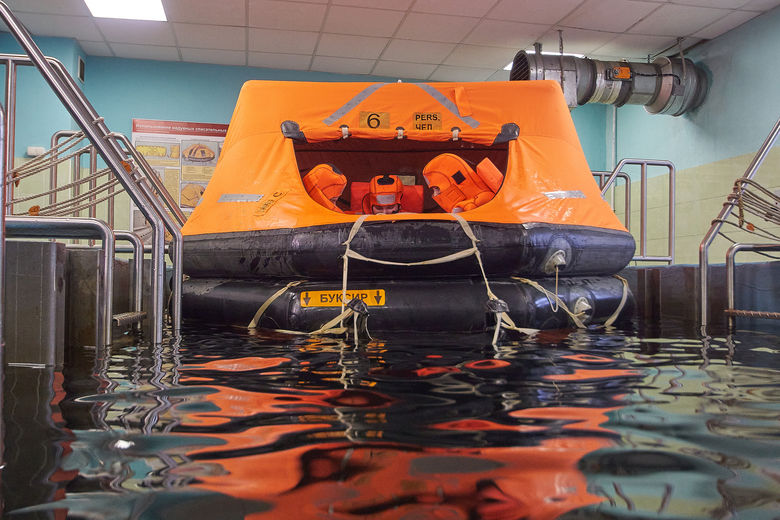 Алексей Фролов ведёт занятия по борьбе за живучесть корабля, одновременно учит покидать его в случае, когда затопление неминуемо.