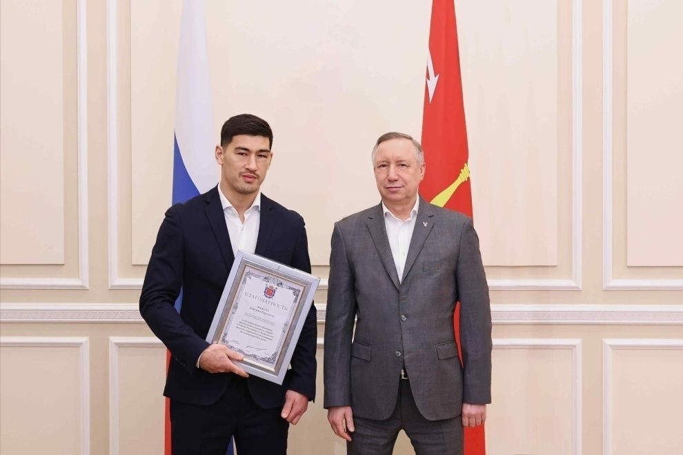 Александр Беглов вручил Дмитрию Биволу благодарность губернатора Санкт-Петербурга за значительный вклад в развитие физической культуры и спорта, а также за высокие спортивные достижения на международной арене.