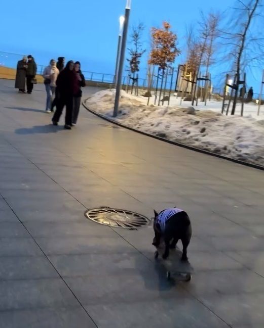 Самый забавный мопс открыл сезон катаний на скейте у «Лахта Центра»