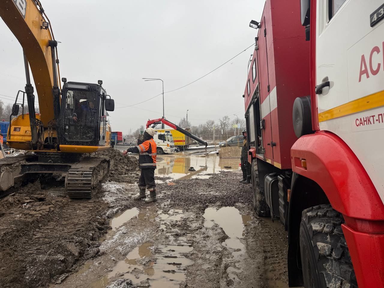 «Водоканал Санкт-Петербурга» привлёк дополнительные силы и средства для устранения технологического нарушения на водоводе на улице Подвойского.