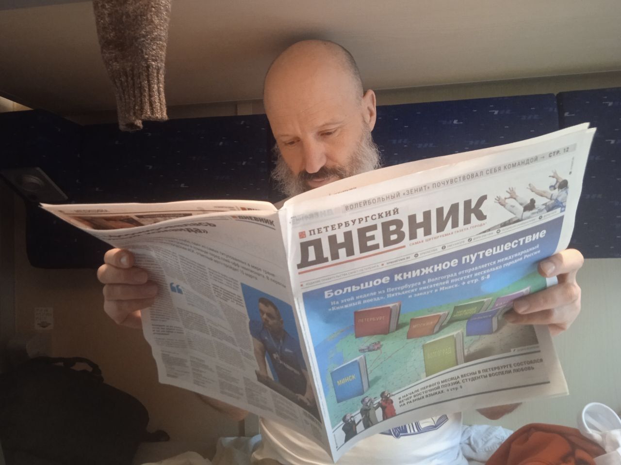 Отметим, что скучать в дороге пассажирам «Книжного поезда» не приходится: они с удовольствием читают специальный выпуск «Петербургского дневника», посвященный литературной экспедиции.