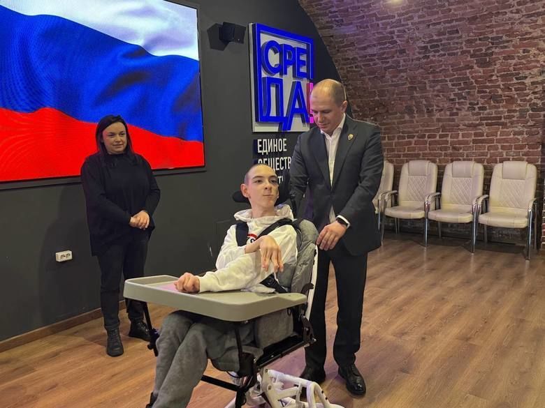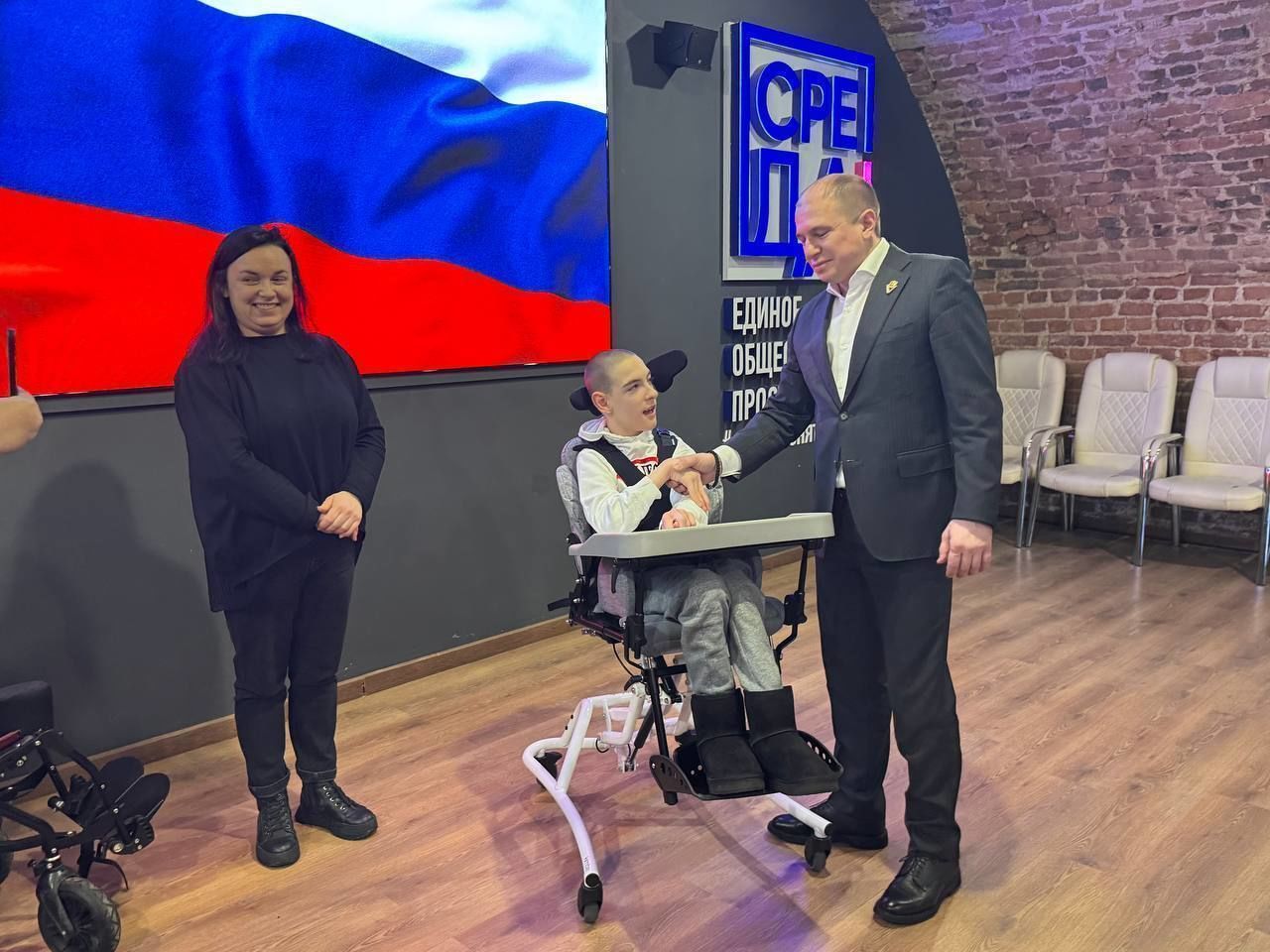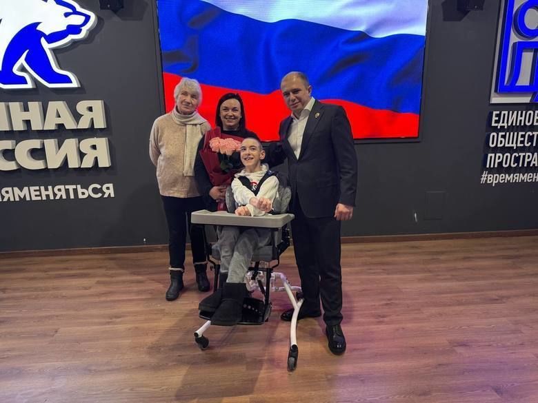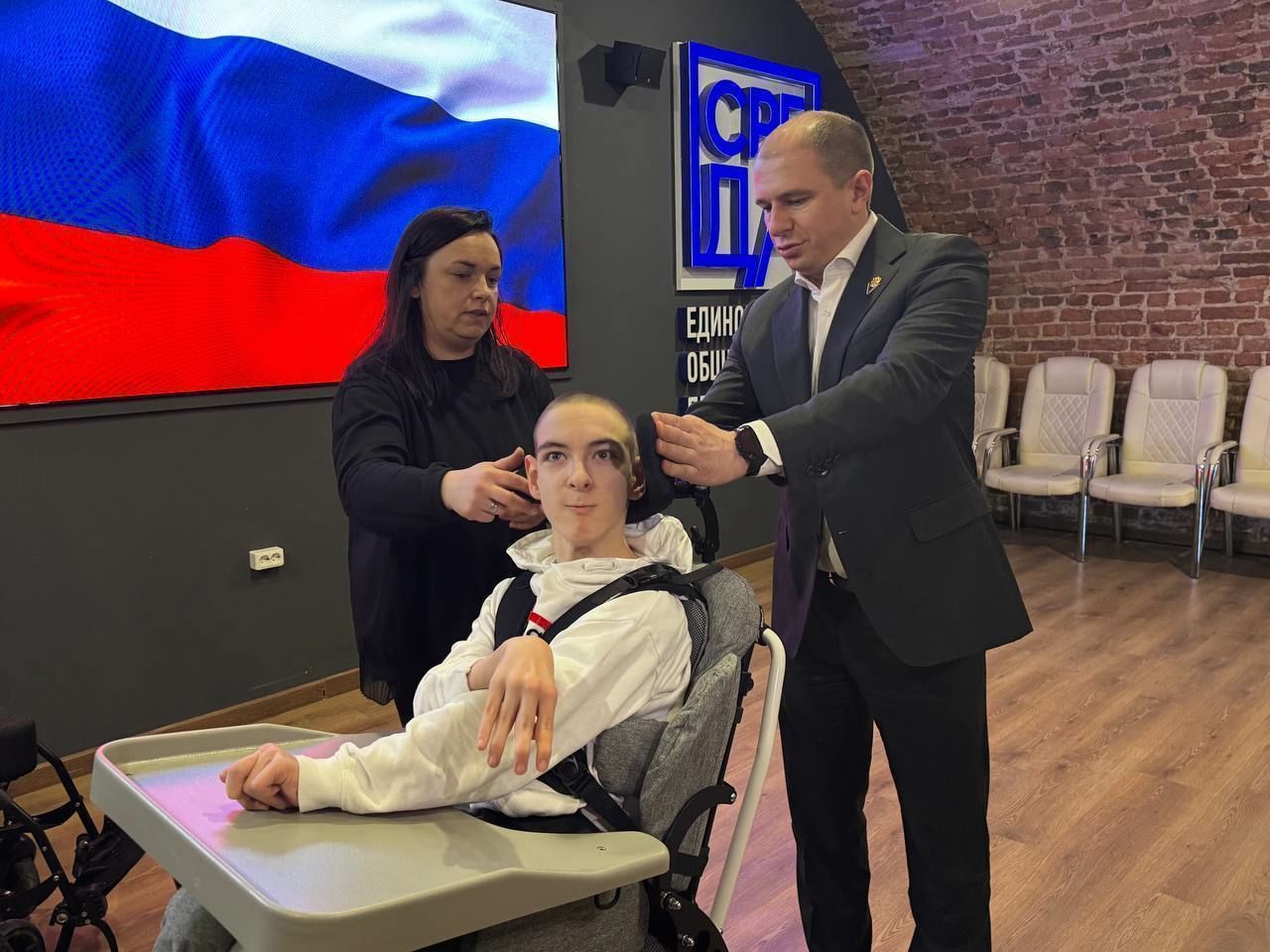 На площадке региональной общественной приемной председателя партии «Единая Россия» Дмитрия Медведева депутат Государственной думы Михаил Романов вручил мальчику с детским церебральным параличом современную инвалидную кресло-коляску отечественного производства.