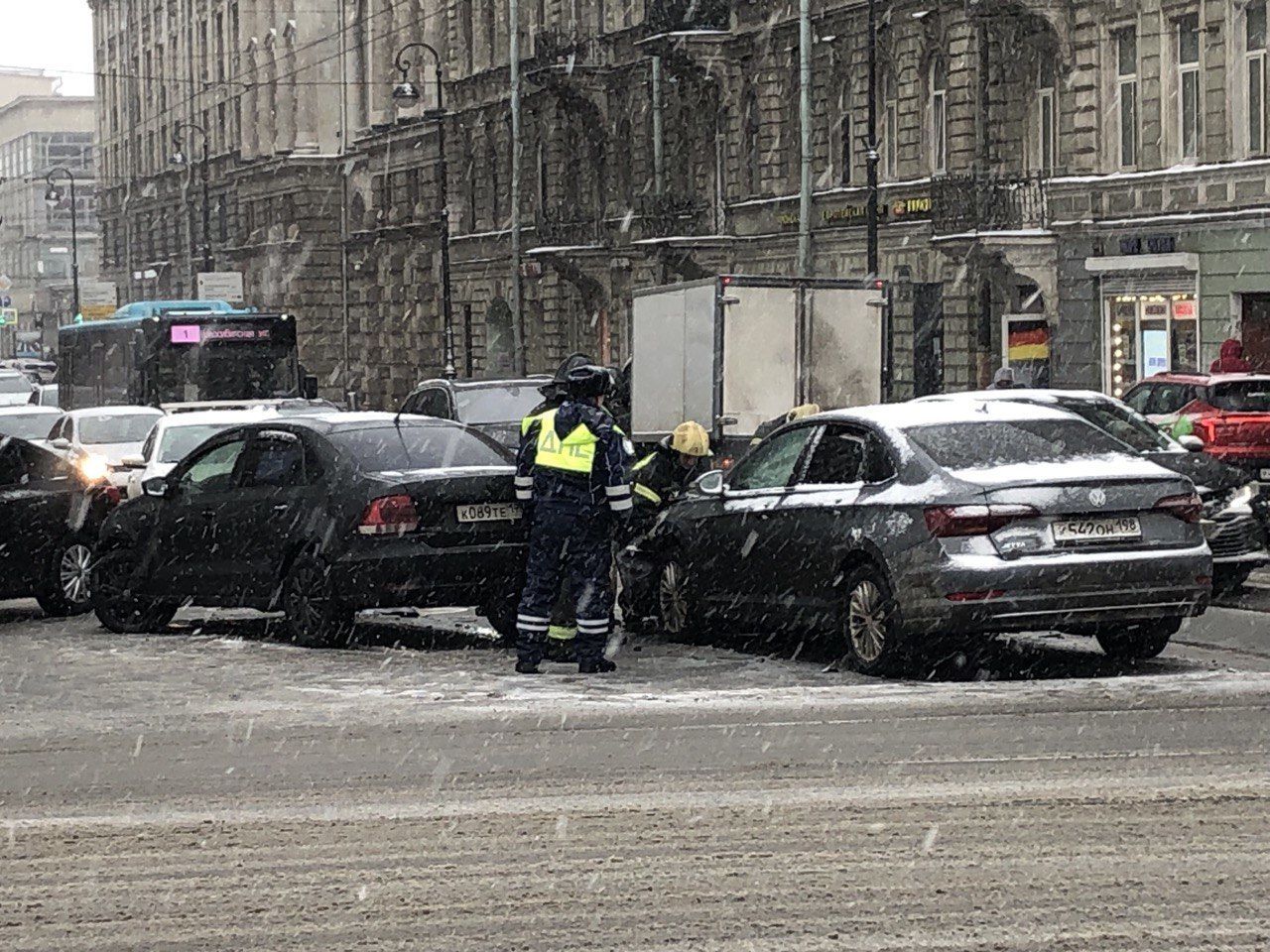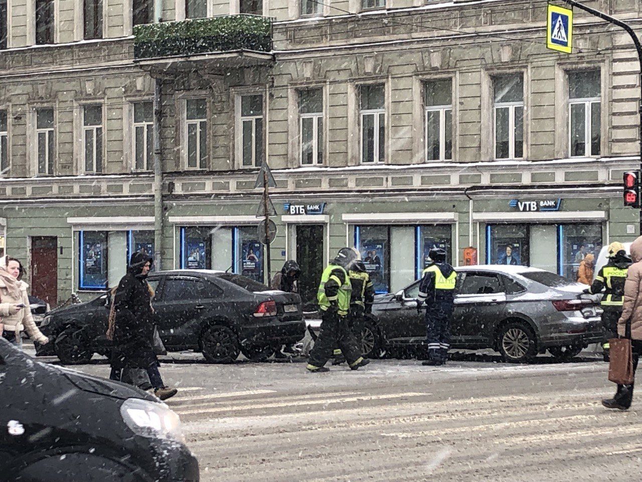 В Петербурге на Каменноостровском проспекте произошла авария: столкнулись две легковушки.