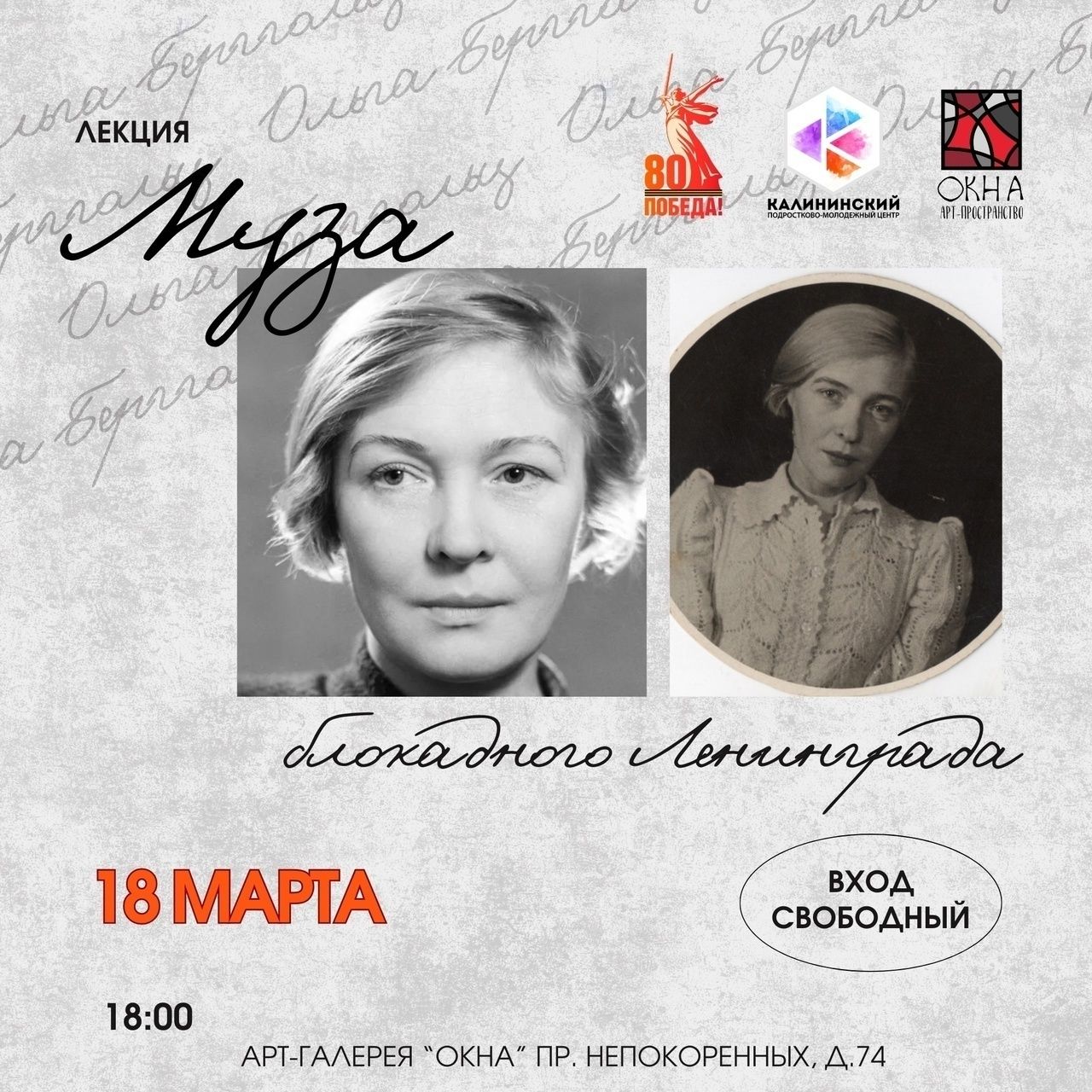 В арт-галерее «Окна» на проспекте Непокорённых, дом 74, в Петербурге в следующий вторник, 18 марта, пройдёт лекция «Муза блокадного Ленинграда», посвящённая жизни и судьбе Ольги Берггольц.