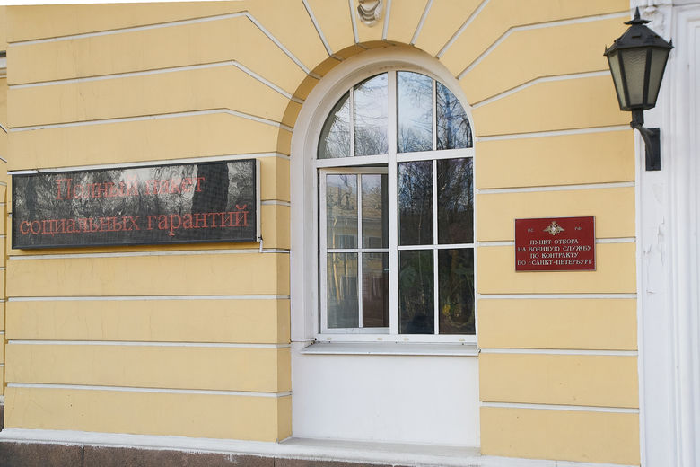 В Петербурге продолжается работа по приёму граждан на военную службу по контракту. Ежедневно десятки людей приходят в городской пункт отбора, расположенный в Подъездном переулке.