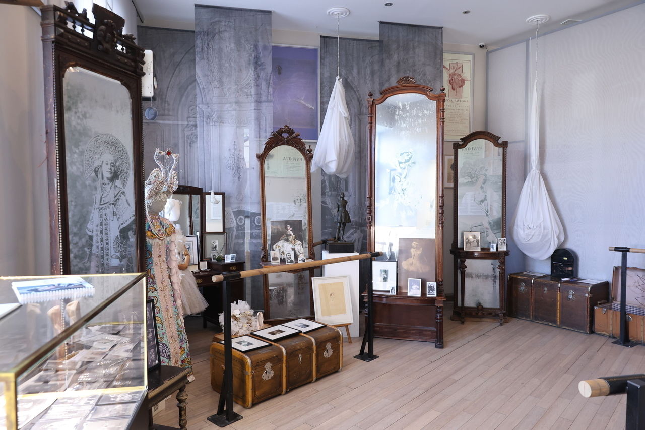 Сердце выставки – «Зеркальная комната Анны Павловой». Арт-пространство здесь расположено неслучайно. Именно в доме на Итальянской, 5, прима-балерина Мариинского театра (1906 – 1913 гг.) жила в 1909–1910 годах. В исторических интерьерах можно примерить пуанты, встать к балетному станку или рассмотреть редкие фото: Павлова со сфинксом на верблюде или с Чарли Чаплином. Таких кадров в галерее насчитывается более 30 штук.
