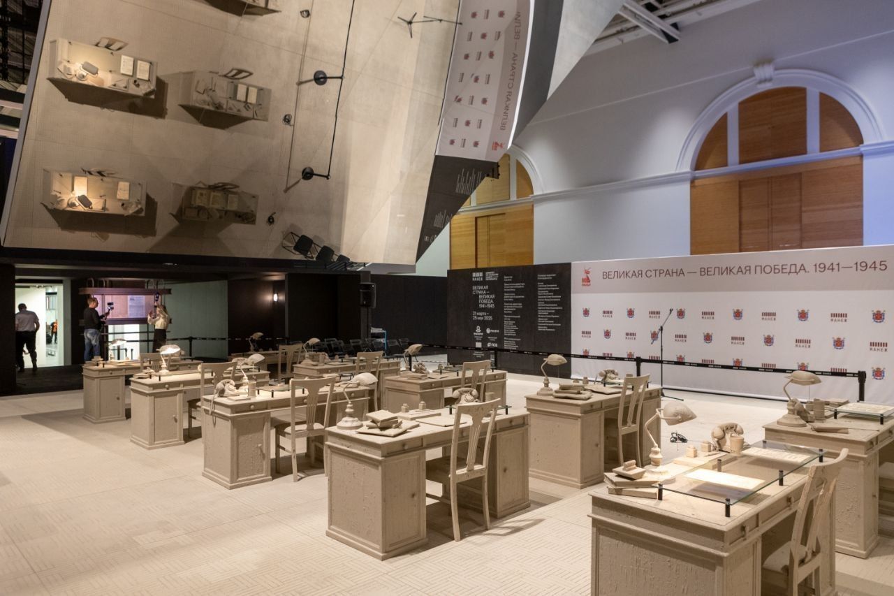 Как рассказала один из кураторов выставки Ольга Романова, историко-документальный проект «Великая страна – Великая Победа. 1941-1945» подготовлен Манежем совместно с 50 партнерами – музеями, архивами, предприятиями, научно-исследовательскими институтами и университетами. Семь его разделов иллюстрируют переход на военные рельсы транспортной системы, промышленности, экономики, науки, медицины, сельского хозяйства и культуры в годы Великой Отечественной войны.
