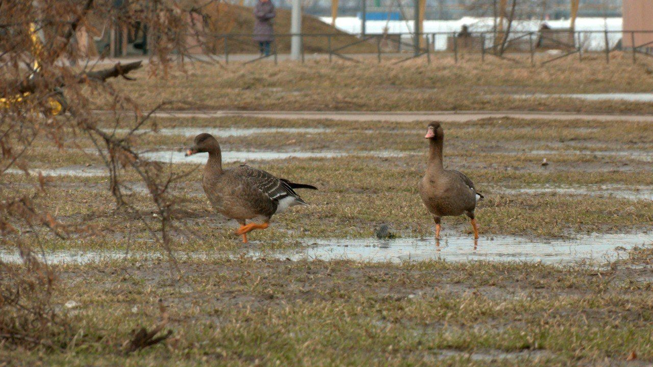 Два гуся, отставшие от стаи осенью, успешно перезимовали в Петербурге