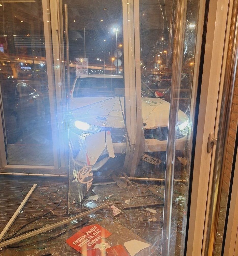«Kia K5 врезалась в стеклянную дверь и повредила входную группу», – написали авторы поста и поделились фотографиями в Telegram-канале «Мегаполис».
