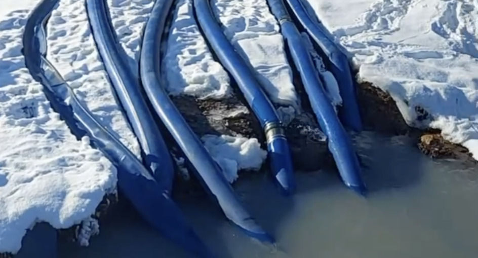 Во время выездного обследования установили, что с территории возводимого жилого комплекса с использованием рукавов откачивается вода из котлована, предназначенного для строительства локальных очистных сооружений. Сброс производится в дренажную канаву вдоль Гатчинского шоссе.